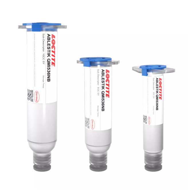 LOCTITE ABLESTIK QMI536NB is a low-bleed, non-conductive, PTFE-filled paste designed for stacked die applications requiring low stress and strong mechanical properties. It offers fast curing, high resistance to delamination and popcorning, and enhanced reliability across various surfaces, including solder resist, flexible tape, bare silicon, and die passivations.