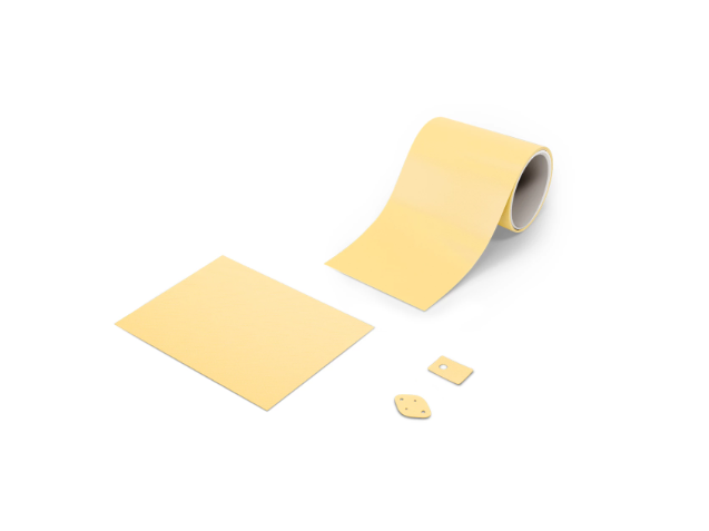 BERGQUIST BOND PLY TBP 1400LMS-HD is a thermally conductive, heat-curable laminate material consisting of a high-performance, low modulus silicone compound coated on a cured core. It features: