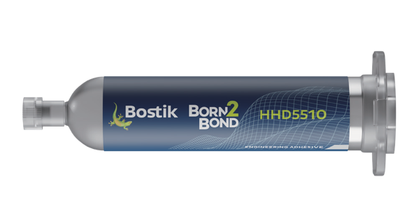 HHD 5510 is a one-component, solvent-free, moisture curing polyurethane adhesive. Once it has been dispensed, the adhesive will react with ambient moisture or water content of the substrates to yield a cross-linked thermoset adhesive. HHD 5510 contains a fluorescent agent allowing for UV inspection.