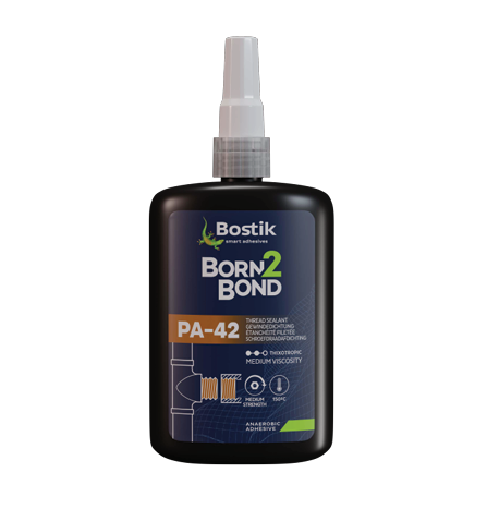 Born2Bond™ Pipe Sealing PA-42 is a medium-strength, medium-viscosity anaerobic thread sealant designed for sealing metal pipes and fittings. It provides an instant low-pressure seal and prevents leakage and loosening caused by vibration and shock. The product is ideal for hydraulic valves and threaded couplings, ensuring a 100% connection without loosening.