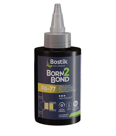 Born2Bond™ Pipe Sealing PA-77 is a high-strength, high-viscosity anaerobic thread sealant designed for sealing metal pipes and fittings. It provides an instant low-pressure seal and prevents leakage and loosening caused by vibration and shock. The product ensures a 100% connection without loosening and offers excellent oil tolerance and high-pressure sealing up to 350 bar.