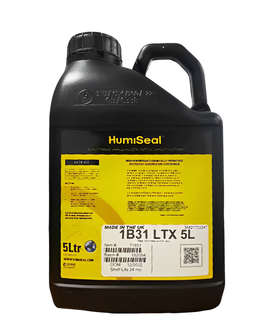 HumiSeal® 1B31 LTX is a fast-drying, single-component acrylic conformal coating designed to protect electronic assemblies from moisture, corrosion, and contaminants. It is formulated with reduced xylene and toluene concentration, ensuring compliance with GB30981-2020 VOC standards. The product is available in various pre-blended formulations, eliminating the need for further dilution.