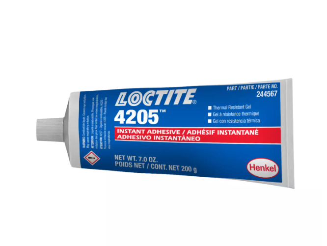 LOCTITE® 4205™ is a cyanoacrylate-based adhesive designed for applications requiring heat resistance, impact resistance, and flexibility. It is toughened with elastomers for improved durability and performs well on rubbers, plastics, and metals. The adhesive cures upon exposure to humidity.