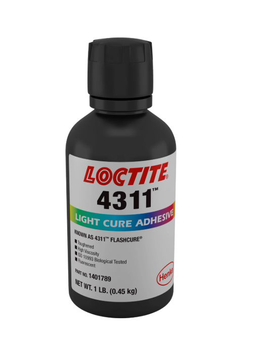 LOCTITE® 4311™ is a one-part cyanoacrylate adhesive with UV/visible light curing and secondary humidity curing. It is designed for rapid fixturing, fillet cure, and surface cure, minimizing blooming and eliminating the need for solvent-borne accelerators. It is suitable for bonding plastics, rubbers, and metals and is compliant with ISO 10993 biocompatibility standards for medical device assembly.