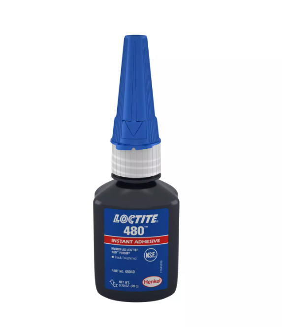 LOCTITE® 480™ is a rubber-toughened cyanoacrylate adhesive designed for increased flexibility, peel strength, and enhanced shock resistance. It is a black, low-viscosity liquid that cures upon exposure to atmospheric moisture.
