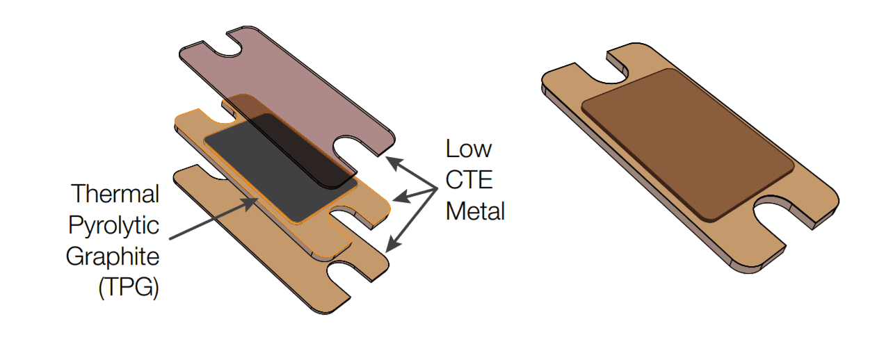 CTE-Matched TMP-EX Composite Heat Sink is a high-performance thermal management solution that integrates a Thermal Pyrolytic Graphite (TPG) core (>1500 W/m·K)* with a coefficient of thermal expansion (CTE)-matched enclosure. This ensures exceptional thermal conductivity and reliability, particularly for microelectronics and optoelectronic applications.